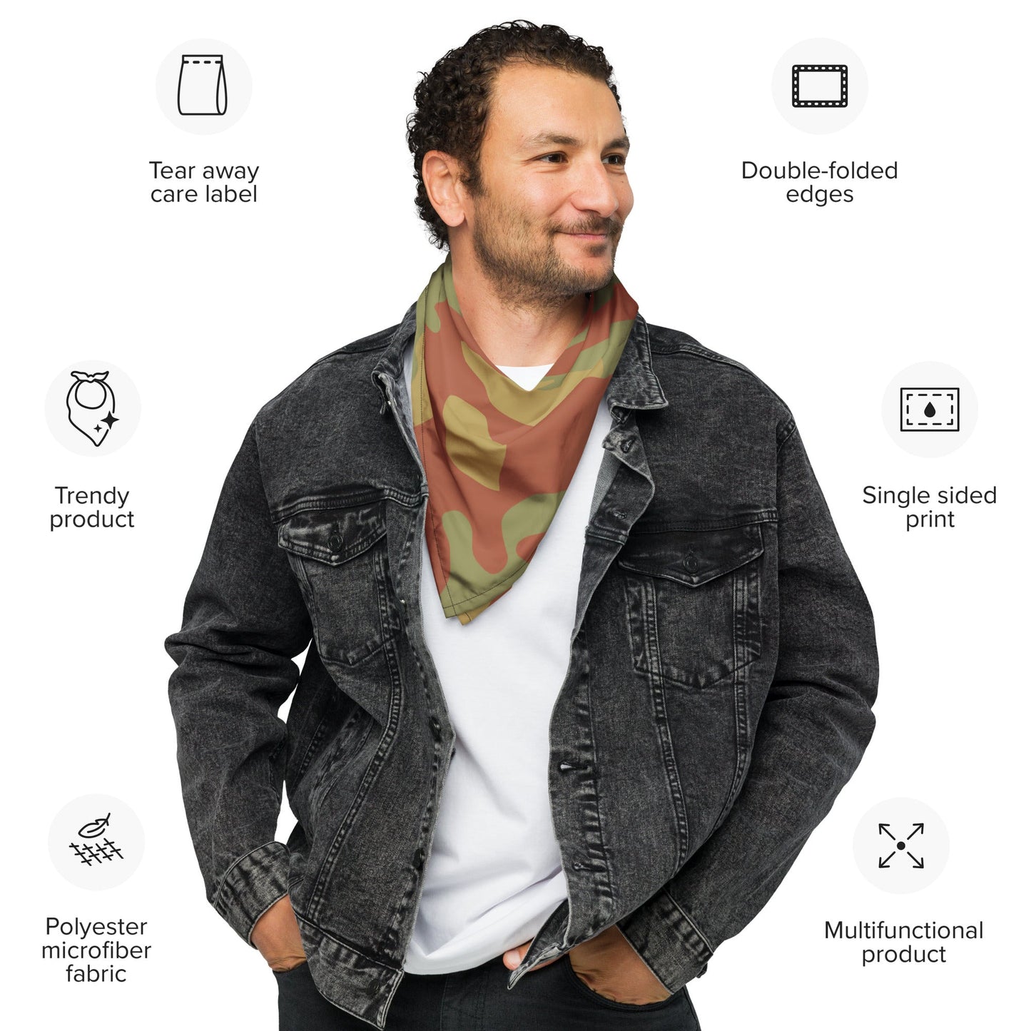 Get ready to make a statement with this all-over print bandana. Mix up your outfits by using this as a headband, necktie, or armband. In fact, why not get a second bandana to match your pet? Grab a few and hit the streets in style!