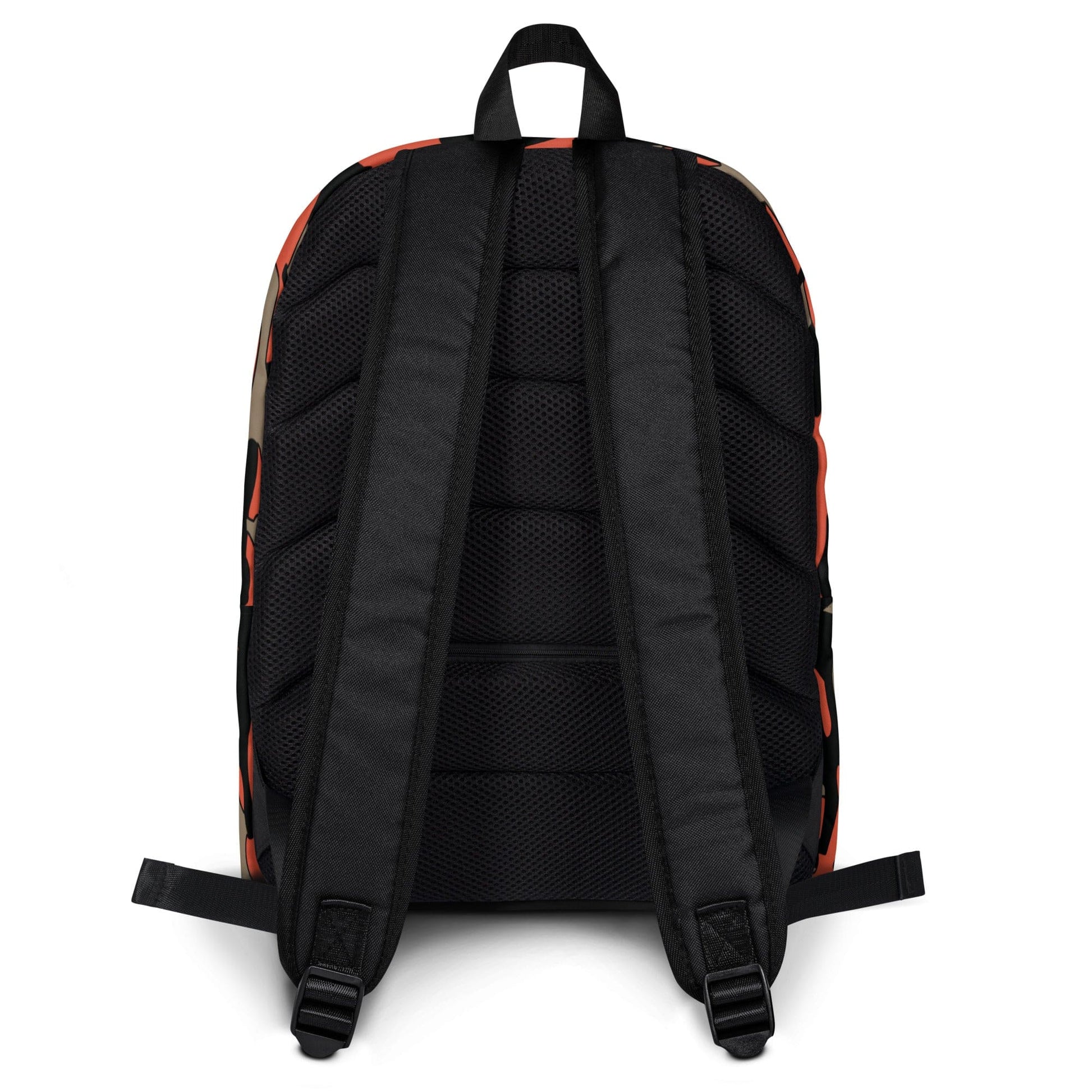 - Padded ergonomic bag straps with plastic strap regulators