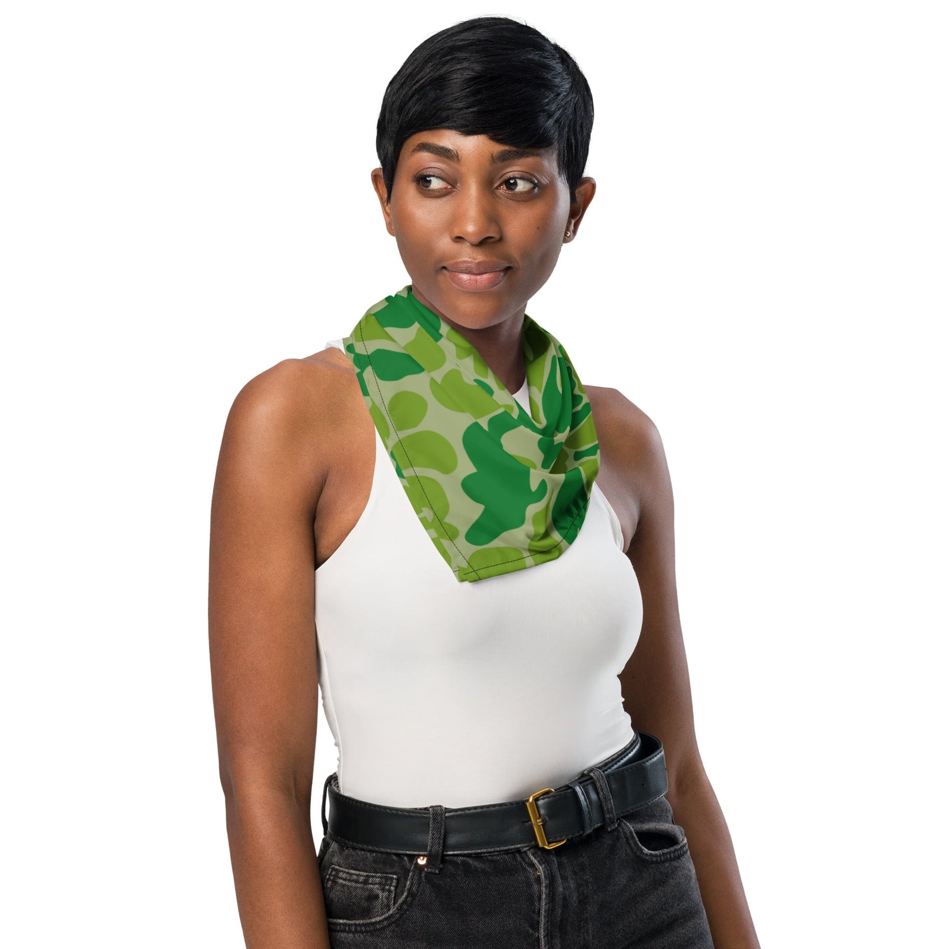 Get ready to make a statement with this all-over print bandana. Mix up your outfits by using this as a headband, necktie, or armband. In fact, why not get a second bandana to match your pet? Grab a few and hit the streets in style!